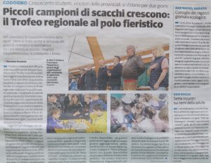 Si è svolta – nelle giornate di martedì 14 e mercoledì 15 aprile – la fase regionale di Lombardia del Trofeo Scacchi Scuola (TSS) 2026 organizzata dal Comitato Regionale Lombardo Scacchi. Sede ospitante: il Polo Fieristico Vezzulli di Codogno (Lodi) che ha retto perfettamente alla pacifica e festante invasione di sessantasette (67) squadre fra Primarie (A e F) e Secondarie di 1° grado (A e F) il primo giorno e sessantatre (63) squadre fra Secondaria di 2° grado Allievi e Juniores (A e F) il secondo giorno per un totale di centotrenta (130) squadre e circa cinquecentoottanta (580) giocatori. Questi numeri dimostrano quanto l’interesse per i tornei per rappresentative scolastiche sia vivo e sentito, sia da parte dei giocatori sia da parte dei docenti che accompagnano, seguono, tifano, gioiscono (e soffrono) con il medesimo entusiasmo degli allievi. Passiamo ai risultati. Torneo Primarie Femminile (11 squadre): si qualificano alla finale nazionale IC Petteni Pascoli di Bergamo (1°), Da Fano di Milano (2°), Bauer di Cinisello B. (3°), IC Varese 2 Silvio Pellico con premio alle migliori scacchiere per: Valentina Tondo (IC Petteni Pascoli, migliore prima), Sophie Busnach (Da Fano, migliore seconda), Ester Pescara (Da Fano, migliore terza) e Lea Helene Bally (Da Fano, migliore quarta). Torneo Primarie Assoluto (17 squadre): si qualificano alla finale nazionale St. Louis Campus Colonna di Milano (1°), IC Petteni Pascoli di Bergamo (2°), IC Ciserano BG (3°), IC Valtenesi di Manerba del Garda BS, Istituto Maddalena di Canossa di Monza, Squadra G. Rodari Lomazzo CO con premio alle migliori scacchiere per Simon Meng (St. Louis Campus Colonna, migliore prima), Giovanni Tommasi Sabbadini (St. Louis Campus Colonna, migliore seconda), Angelo Mesa Tonanza (IC Valtenesi, migliore terza) e Federico Gervasoni (IC Petteni Pascoli, migliore quarta). Torneo Secondarie di 1° grado Femminile (16 squadre): si qualificano alla finale nazionale Achille Ricci di Milano (1°), IC Lomazzo CO (2°), IC Zogno BG (3°), FAES Monforte di Milano, IC di Codogno LO (la squadra di casa!!!) con premio alle migliori scacchiere per Valeria Marazita (FAES Monforte, migliore prima), Sofia Zanchi (IC Maddalena di Canossa, migliore seconda), Rosalucia Barresi (IC di Codogno, migliore terza) e Alice Maranta (Achille Ricci, migliore quarta). Torneo Secondarie di 1° grado Assoluto (23 squadre): si qualificano alla finale nazionale Educandato Setti Carraro dalla Chiesa di Milano (1°), IC Caduti Piazza della Loggia di Ghedi BS (2°), Istituto San Vincenzo di Erba CO (3°), IC Montalcini di Gorgonzola MI, IC Ciserano BG, IC Bonate Sopra di Presezzo BG e FAES Argonne di Milano con premio alle migliori scacchiere per Matteo Camboni (IC Bonate Sopra Presezzo, migliore prima), Riccardo Colleoni (IC Bonate Sopra Presezzo, migliore seconda), Ettore Villa (IC Montalcini, migliore terza) e Riccardo Molteni (IC Matilde di Canossa, migliore quarta). Torneo Secondarie di 2° grado Allieve Femminile (8 squadre): si qualificano alla finale nazionale LS Copernico di Pavia (1°), LS Galilei di Erba CO (2°), Liceo Einstein di Milano (3°) con premio alle migliori scacchiere per Dana Elyiv (LS Galilei, migliore prima), Camilla Sorito (LS Copernico, migliore seconda), Camilla Taddei (LS Einstein, migliore terza) e Beatrice Boroni (ISIS Natta BG, migliore quarta). Torneo Secondarie di 2° grado Allievi Assoluto (22 squadre): si qualificano alla finale nazionale LSS Elio Vittorini di Milano (1°), LS Volta di Milano (2°), LS Galilei di Erba CO (3°), LS Vittorio Veneto di Milano, LS Mascheroni di Bergamo, LS Gandini di Lodi e IIS Cesaris di Casalpusterlengo LO con premio alle migliori scacchiere per Davide Martirosyan (LSS Vittorini, migliore prima), Davide Lazzari (ITIS Pietro Paleocapa BG, migliore seconda), Francesco Scarfiello (LSS Vittorini, migliore terza) e Leonardo Puppo (LS Galilei, migliore quarta). Torneo Secondarie di 2° grado Juniores Femminile (9 squadre): si qualificano alla finale nazionale Liceo Casiraghi di Milano (1°), ISIS Natta di Bergamo (2°), LGS Benedetto Cairoli di Vigevano PV (3°) con premio alle migliori scacchiere per Elisa Remedi (Liceo Vittorio Veneto, migliore prima), Meniar Aridhi (ISIS Natta, migliore seconda), Letizia Branchetti (LGS Benedetto Cairoli, migliore terza) e Giulia Nazzicone (Liceo Casiraghi, migliore quarta). Torneo Secondarie di 2° grado Juniores Assoluto (24 squadre): si qualificano alla finale nazionale LGS Benedetto Cairoli di Vigevano PV (1°), IIS Cremona-Zappa di Milano (2°), LS Galileo Galilei di Crema CR (3°), ISIS Setificio Paolo Carcano di Como, LS Mascheroni di Bergamo, LS Galileo Galilei di Crema CR, MG Agnesi di Merate e LS Lussana di Bergamo con premio alle migliori scacchiere per Marco Sgaria (Liceo Majorana di Desio, migliore prima), Andrea Tristan Ciceri (LS Galilei di Erba, migliore seconda), Daniele Arnoldi (LS Mascheroni, migliore terza) e Matteo Pasini (LGS Benedetto Cairoli, migliore quarta). La Finale Nazionale del Trofeo Scacchi Scuola si svolgerà a Montesilvano (PE) dal 18 maggio al 21 maggio 2026 con quota di partecipazione di € 50,00 a squadra. Al termine, i doverosi ringraziamenti vanno a tante persone con scuse anticipate a tutti coloro che saranno colpevolmente dimenticati: citiamo subito lo staff arbitrale coordinato in entrambe le giornate dal perfetto Direttore del Torneo, Mauro Palma e che ha visto al pairing Michele Gisolini nella prima giornata e Tiziana Balzarini nella seconda. Non trovo più parole per descrivere l’efficienza, la precisione e la rapidità dei nostri due Arbitri-al-computer che hanno rispettato tempi e orari senza sbavature. Scattanti e pronti tutti gli Arbitri di sala che citiamo in ordine alfabetico: Roberto Biffi, Alessandro Brigati, Laura Ghezzi, Luciano Lambresa, Raffaele Lombardi e Monica Marinca, sempre vicini alle esigenze di bimbi e ragazzi. Un doveroso ringraziamento va alla Municipalità ed all’Amministrazione d